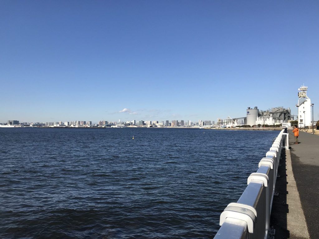 途中で、昨日登れなかった若洲昇降タワーに上りました。警備員さんがいました。