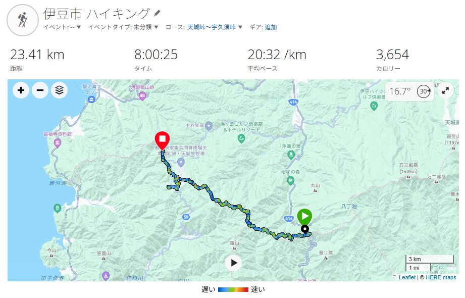 - 当日は晴れ(晴天)で日中は15度程で、トレイルには良い天候でした。