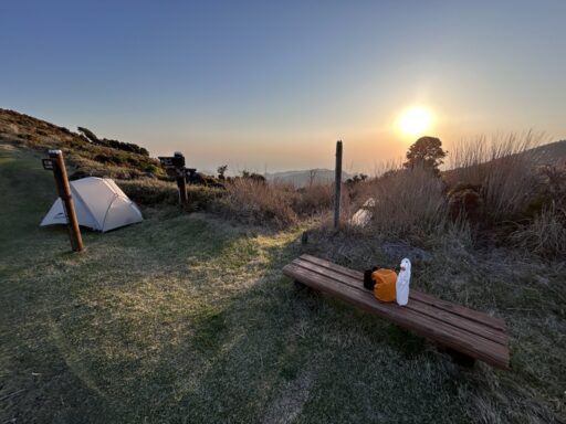- 2025年のゴールデンウイークの始まりになる4月26日(土)に、天城峠からだるま山レストハウスまでのロングトレイルの1泊目として宇久須峠でテント泊しました。