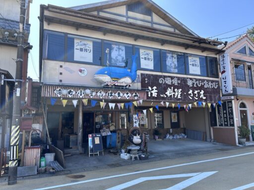 Googleマップだと「井村海鮮事務所」(ガレージの2階)、または隣の「ミキモト真珠島 駐車場」で近辺を検索できます。
