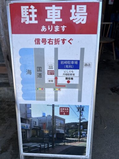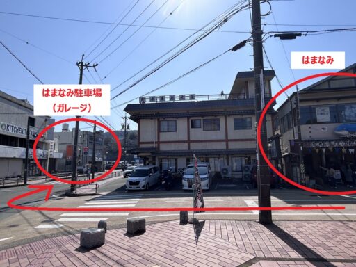 はまなみの駐車場は、店舗前、お店の近隣駐車場(ガレージ)です。